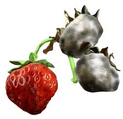 Diese Pilzkrankheit bedroht neben Heidelbeeren auch Himbeeren und einen Großteil des Beerenobstes, wie z.B. Erdbeeren, Brombeeren. Die Ausbreitung wird von einer feucht-warmen Witterung begünstigt und geht meist von den bodennahen Teilen der Pflanzen aus. Die Infektion geht meist von der Kelchregion aus, wo junge Früchte zuerst braun und matschig werden und anschließend komplett von einem grauen Schimmelrasen überzogen sind (siehe Bsp. Erdbeere oben). Der Pilz überwintert auf mumifizierten Früchten und abgefallenen Blättern. Die Sporen verbreiten sich im Frühjahr durch den Wind und Regen.